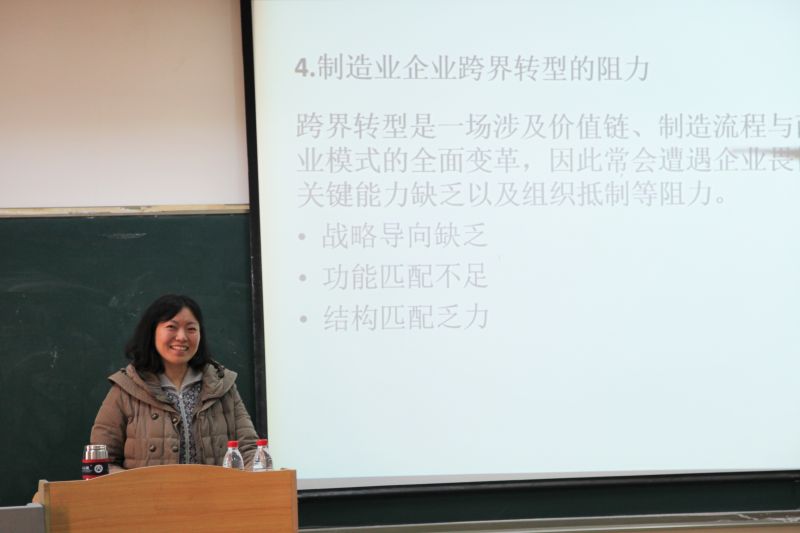 冯文娜将主讲内容分为互联网的经济学分析、网络经济条件下企业成长范式的转变以及网络经济条件下的制造业企业转型升级三个部分。首先,冯文娜从互联网的本质和其经济效应两个方面讲述了互联网的经济学分析。她指出,互联网本质上是个连接,它创造了资源、信息等的筛选方式。其次,她从互联网对企业边界、企业价值创造范式以及其获取范式三个方面的变化对网络经济条件下企业成长范式的改变进行了讲解。她指出,纵向边界的打破解决了生产消费问题,企业价值创造范式由产品主导逻辑向服务主导逻辑转变,企业通过定价转移进行企业价值获取。随后,冯文娜从企业转型升级的含义、网络经济下制造业企业转型升级的新机会和网络经济下制造业企业的跨界转型进行了详细的讲解,并分享了自己研究提出的制造业企业跨界转型的五阶段模型。最后,冯文娜对老师以及同学提出的问题做出了详细解答,在愉快的氛围中结束了本次研习会。