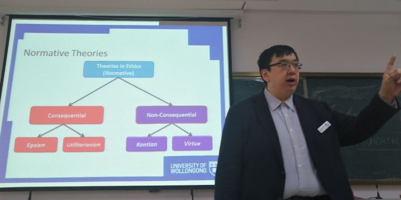《商业伦理》双语课程申报的校级课程国际化项目,该项目已经进行了第二学年。Kevin Huang,作为该课程海外教师,现为澳大利亚伍伦贡大学(University of Wollongong)商学院教师、中国学生教育同盟会创始人。他于去年同期受麻豆网