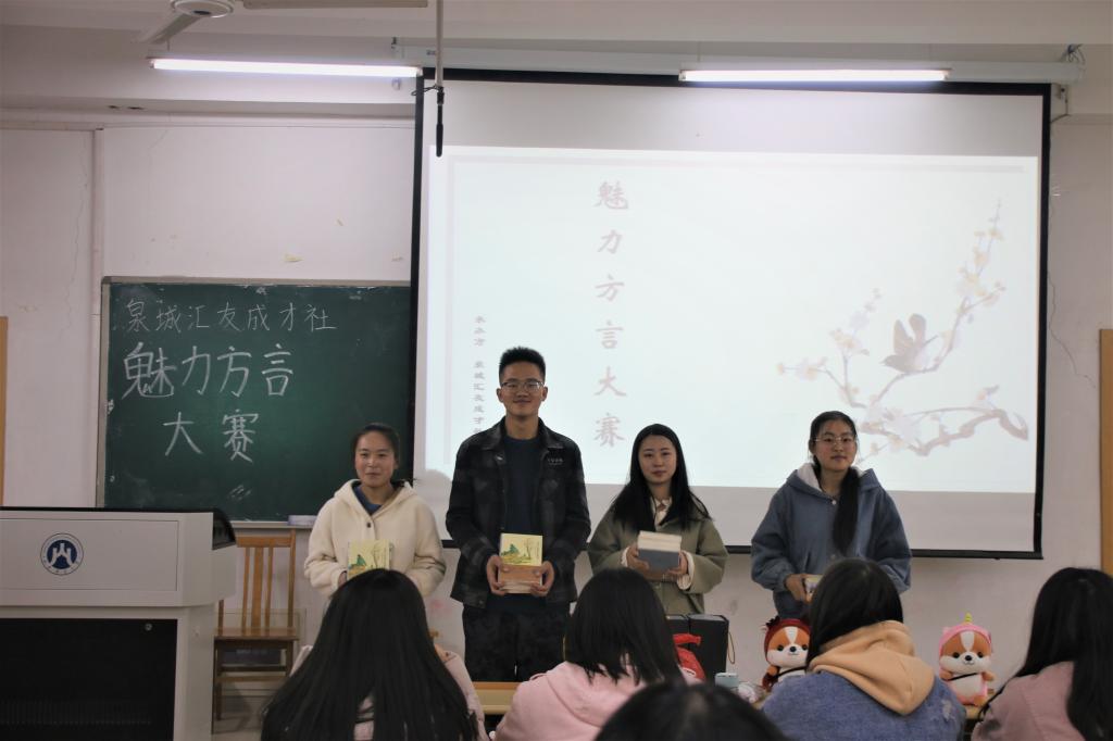 泉城汇友成才社在圣井校区5号教学楼130教室举办了“魅力方言大赛”校园文化活动。本次活动旨在让同学们有机会为自己家乡代言,展示各地域方言文化特色,增强同学们的情感联结和文化融合。