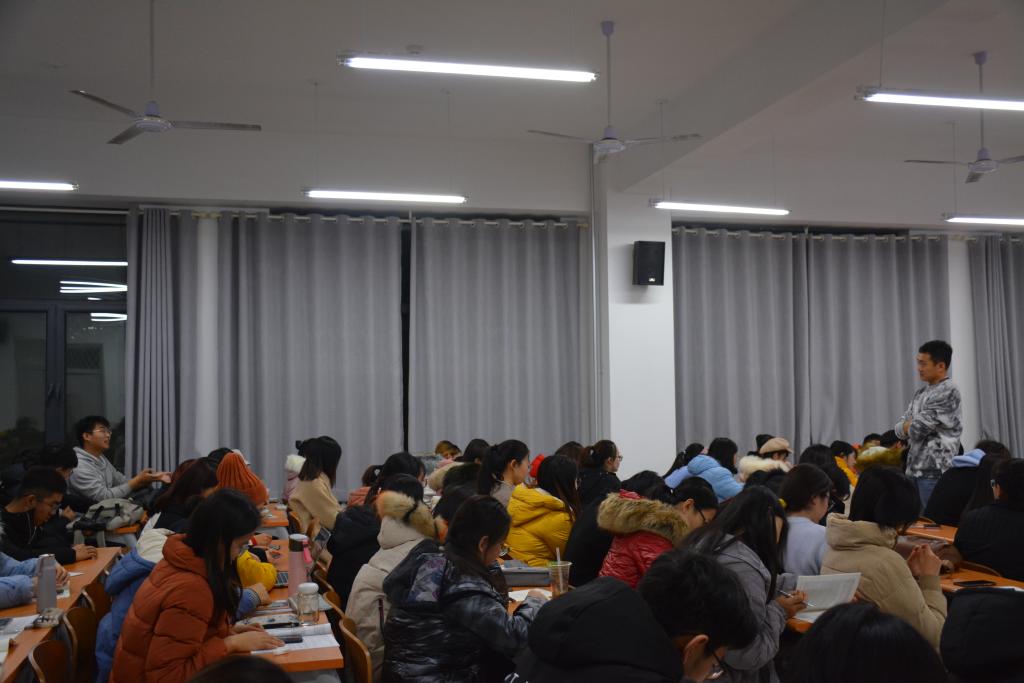 随后,王旭就自主创业、出国读研以及直接就业三个方面进行了深入分析,结合杠铃策略以及自身考研经历讲述了三种选择的条件与利弊,建议同学们走出国门,接受其他国家不同的教育,站在世界上看中国,强调了良好心态的必要性,使同学们意识到提高自身综合素质的重要性。