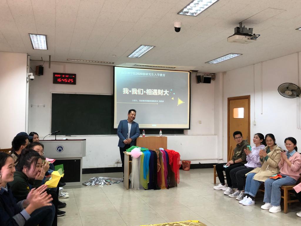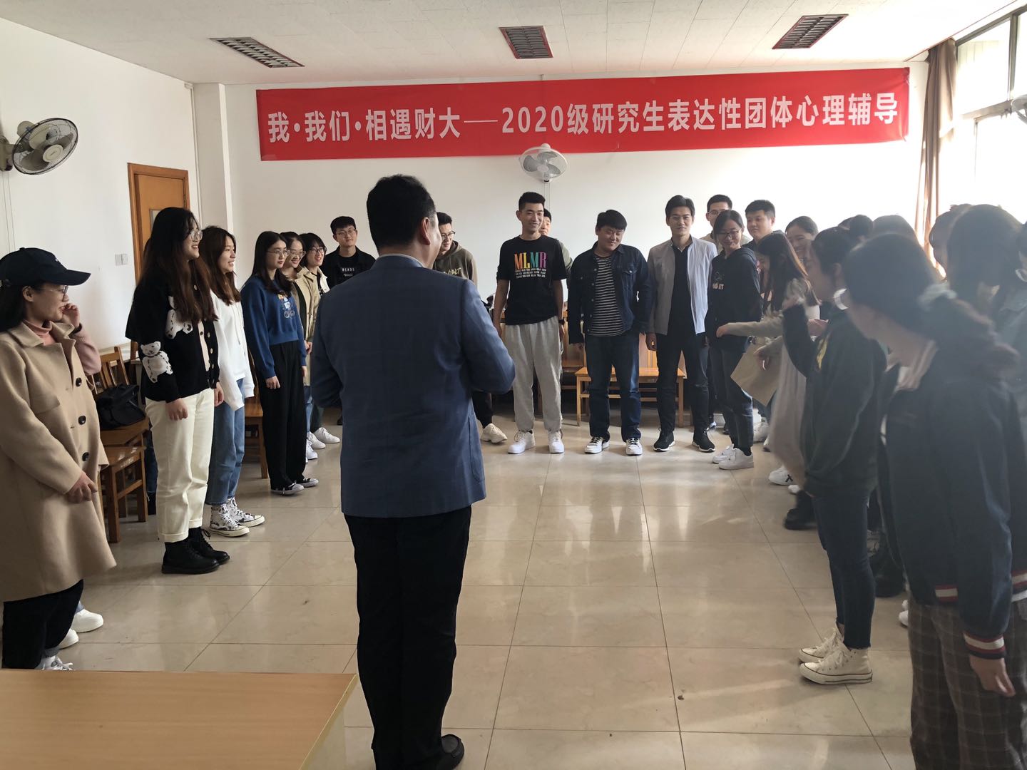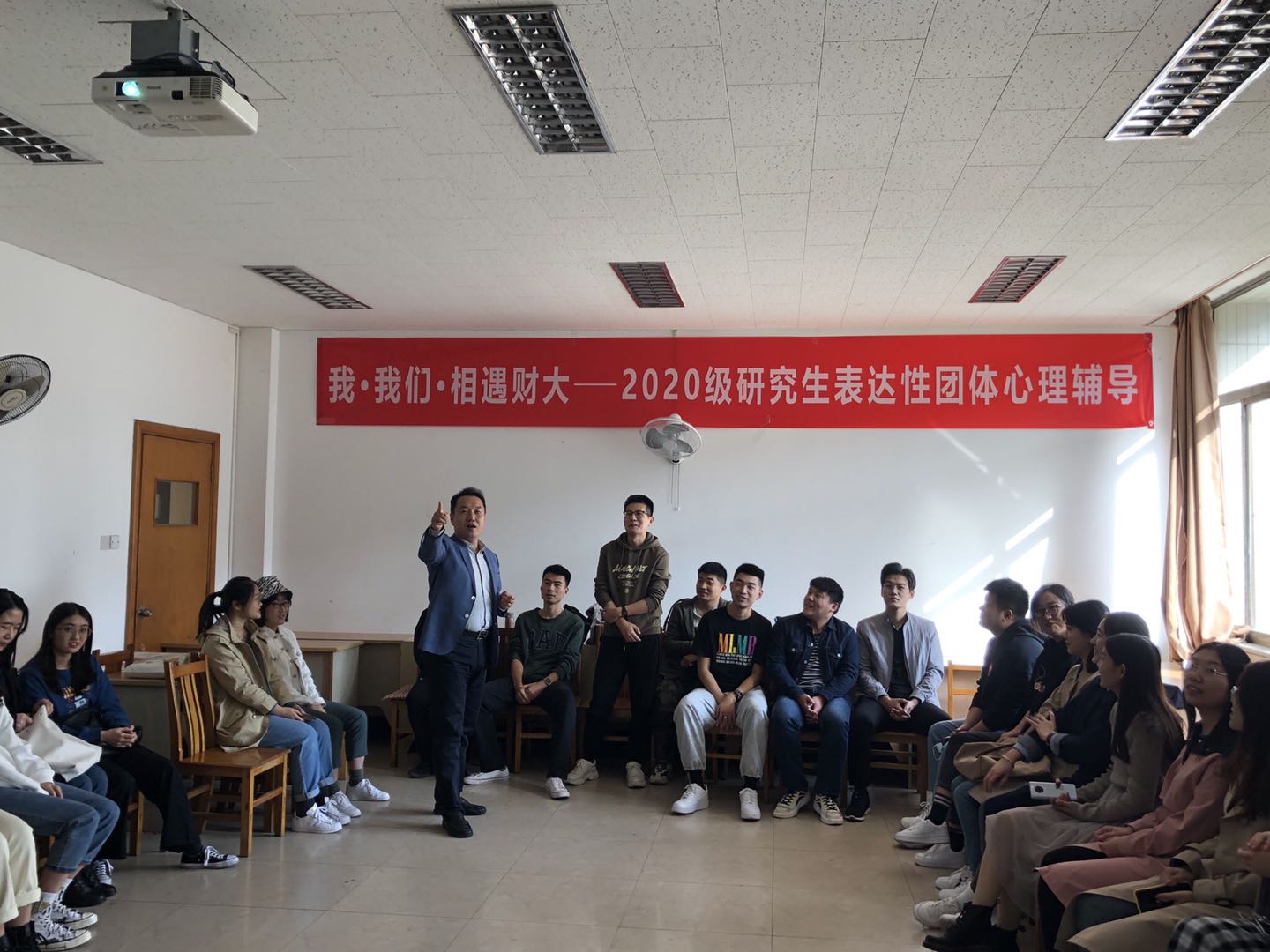 2020级研究生在2401教室上了一堂精彩的表达性团体心理辅导课。团体心理辅导课由学校党委组织部副处级组织员、国家二级心理咨询师刘洪涛讲授,以“我·我们·相遇财大”为主题,旨在促进2020级研究生深入了解班级同学,加强彼此交流、释放自我压力、追求积极生活,增强班级凝聚力。学院党委副书记彭艳红、研究生辅导员侯昭瑾以及2020级全体研究生参加。