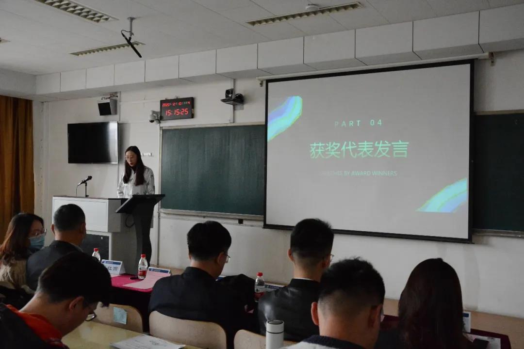 颁奖结束后,获奖同学陈文雁上台发言,指出了简历制作中的几个重点:首先,工作具有很强的专业性,不要过度修饰简历。简历内容要做到详略得当,针对自己应聘的岗位需要把篇幅控制在一页纸之内。此外,过多空洞的描述意义不大,应将成果转化为可量化的数据。