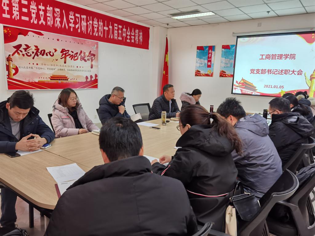 党委2020年党支部书记述职大会在逸夫楼207举行。学院党委委员和全体党支部书记参加了本次会议,会议由党委副书记彭艳红主持。