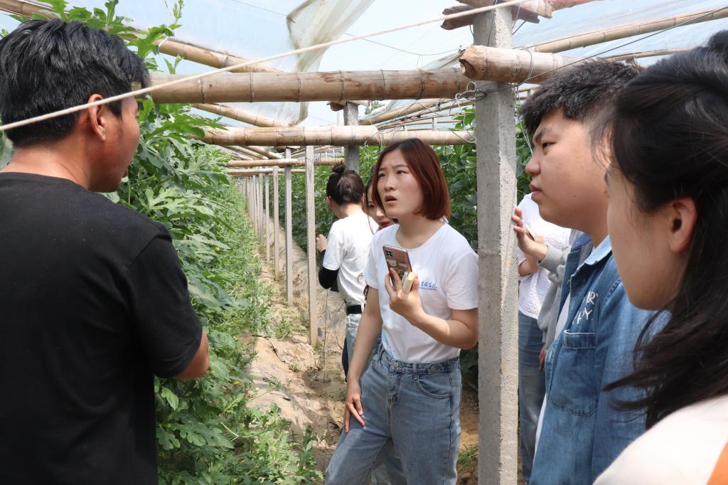 村里的党员同志还带领同学们参观了党员示范果蔬大棚,介绍了果蔬的销售现状以及产业基地的建设规划。整整齐齐的种植架,长势喜人的瓜苗,让同学们更深切地体会到了“实干兴邦,实干惠民”的含义。学生第二党支部主要为市场营销专业的学生,同学们积极发挥专业优势,纷纷对村里的果蔬大棚产业提出了营销建议,受到了村里党员同志的认可。