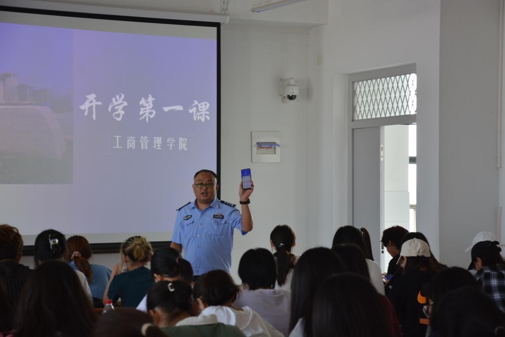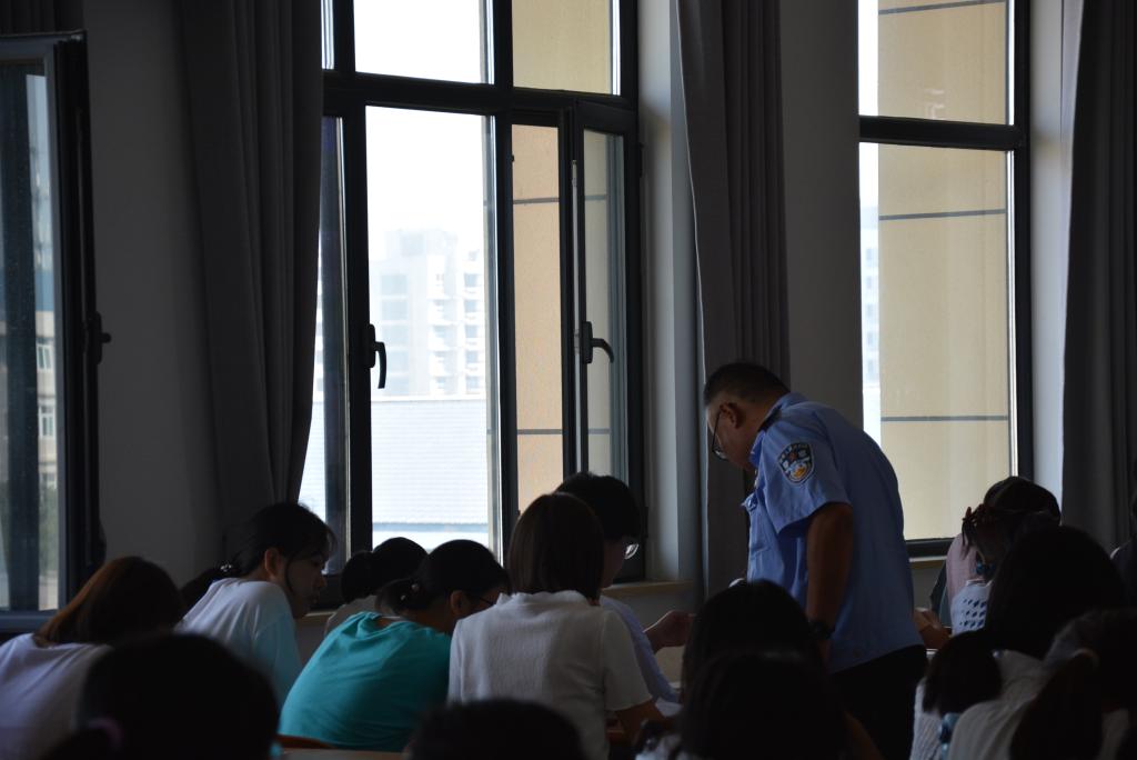 邀请了圣井派出所的孟警官和黄警官到场指导21级新生下载国家反诈中心APP并关注百脉泉畔公众号,除此之外,两位警官还结合自身办案经历,用实际案例向新生传授防诈骗知识,提升了新生的警惕心和防诈骗能力。