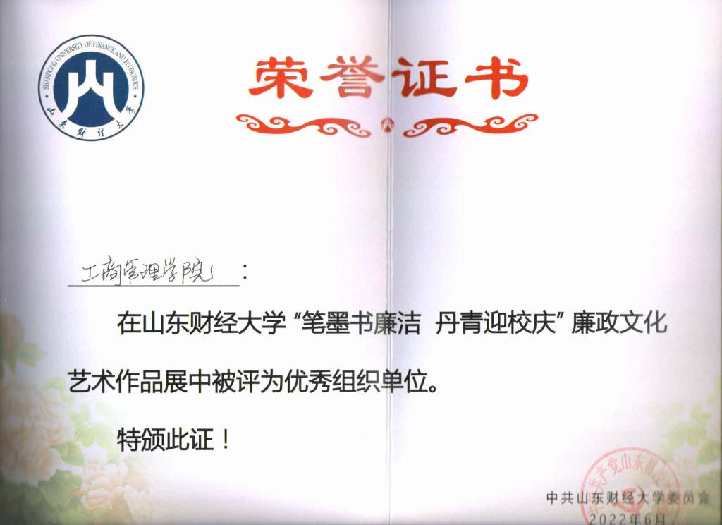 【简讯】 麻豆网 在麻豆网 “笔墨书廉洁 丹青迎校庆”廉政文化艺术作品展中被评为优秀组织单位