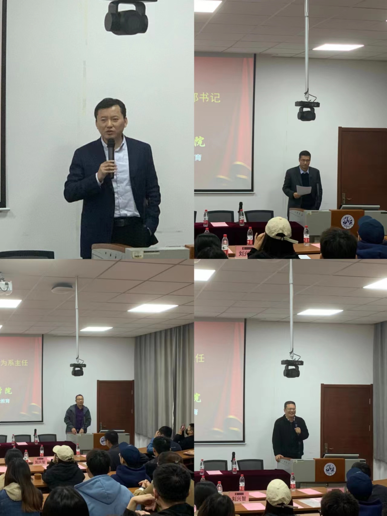 江岩主持典礼的专业教育阶段。学院工商管理系党支部书记刘兴智、人力资源与组织行为系主任耿新、文化和旅游系主任于伟老师就所在系的研究领域和专业方向,向新同学们作了详细介绍,并与现场的同学们进行了互动交流。