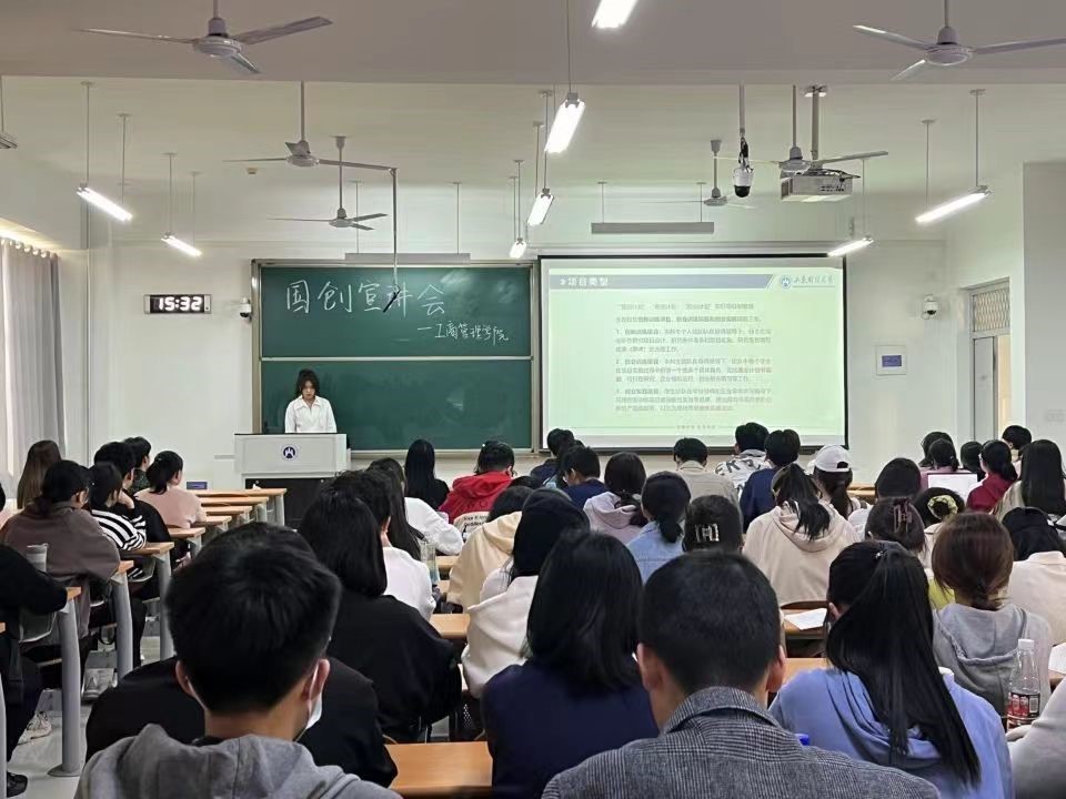 学生会实践创新学术部举办“助力国创,工商领航”主题宣讲会。仉景荣、田也、邱明霞三位同学分别从国际赛事概览与技术支持、计划书撰写与团队沟通技巧、团队组建与立项三方面和2022级同学代表作分享。
