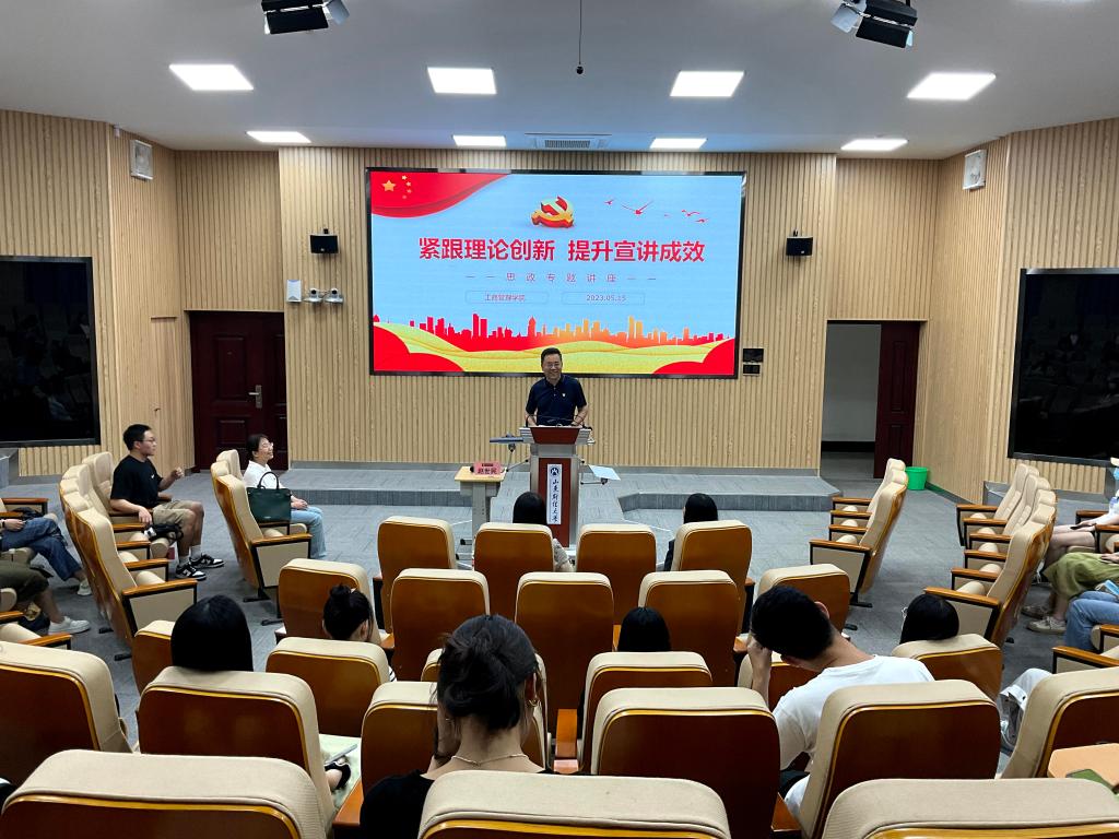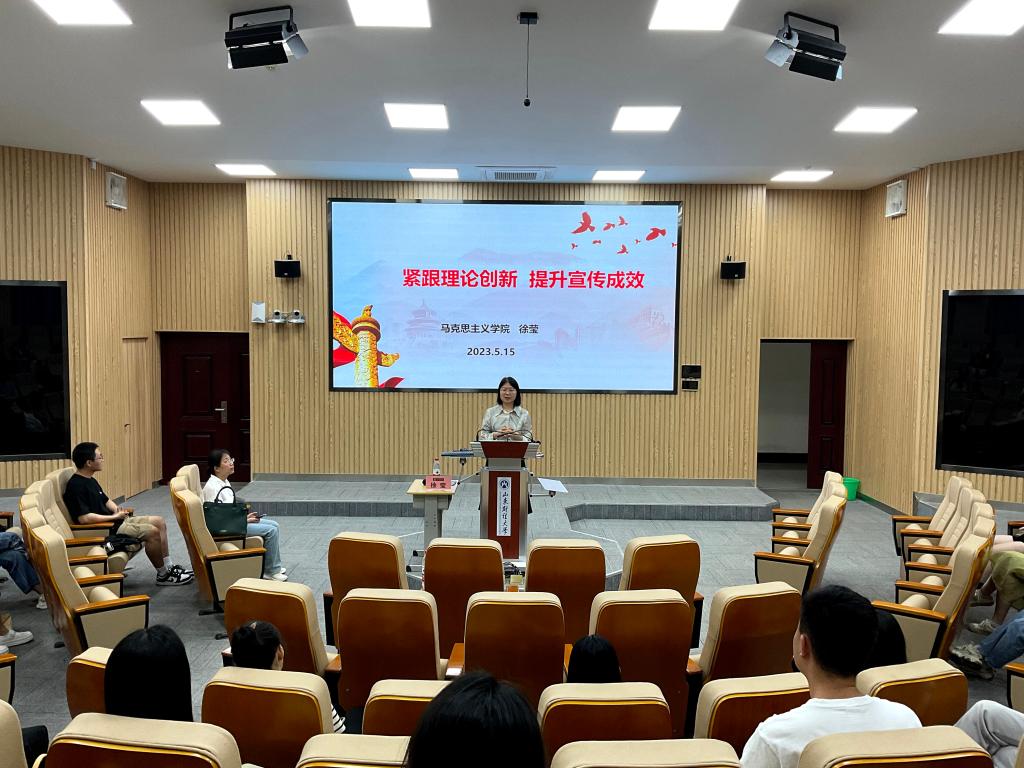 在逸夫楼103报告厅开展了以“紧跟理论创新,提升宣讲成效”为主题的第十五期理论学习周周见活动。本次活动特邀马克思主义学院徐莹院长主讲,学院党委书记赵世民、党委副书记彭艳红和辅导员郭丽娟以及麻豆网