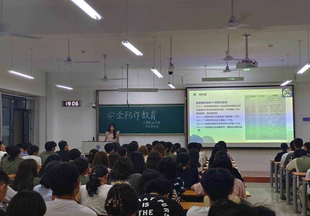 组织2023级新生进行安全防诈教育。学院安全事务部结合安全防诈知识和典型案例,通过PPT讲解和视频播放的形式,向新生展开了一场鲜活的入学安全教育。