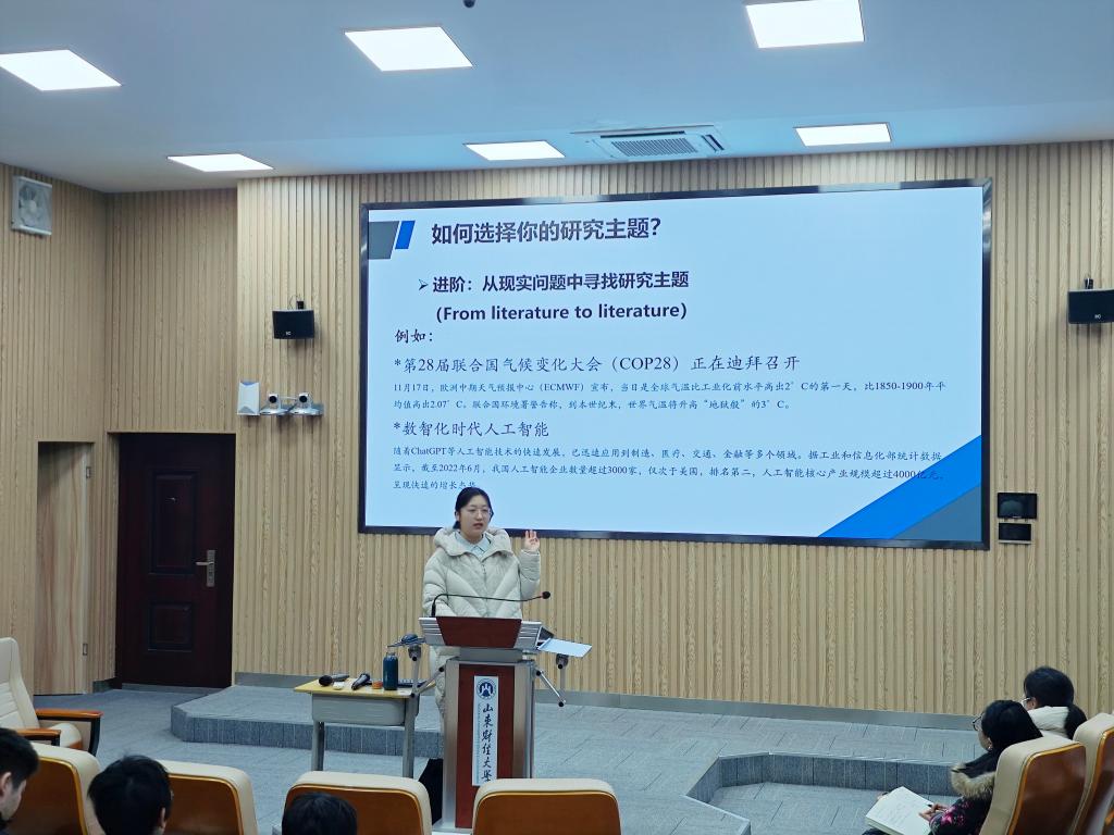 孔晓冉首先以论文写作的前期准备工作为切入点,围绕论文框架选题与阅读、计量方法与软件、走出去和引进来、人工智能助力科研四个方面为同学们提供了一系列实用的写作技巧和建议,旨在帮助同学们尽快建立科学合理的学术创作规划,快速提高科学研究能力。
