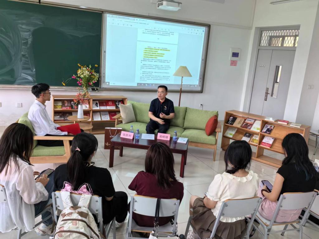 张胜利结合经典书籍《纳瓦尔宝典》,梳理了书中各章节的内容,结合自己的学习、工作经历分享了读书感悟。他表示读书对于个人成长有着重要的作用,勉励同学们要珍惜大学的好时光,多读书、读好书,在书籍中积累知识、拓宽视野、增长智慧、学会思考,通过读书形成良好的思维能力和认知能力,全面提高综合素质;同时他提醒同学们要主动关心关注社会动态和市场需求,为将来的就业做好充分的准备,并现场为同学们赠送了书籍。