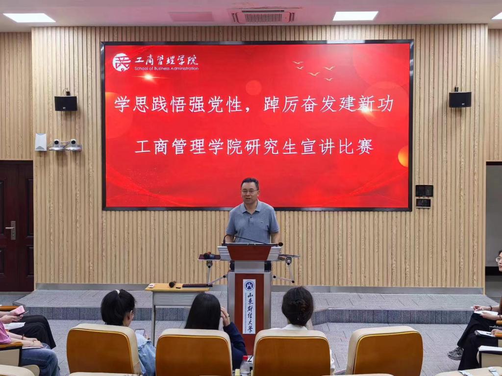 在逸夫楼103报告厅举办“学思践悟强党性踔厉奋发建新功”主题宣讲比赛。学院党委书记赵世民、党委副书记彭艳红、辅导员老师及全体研究生参加。