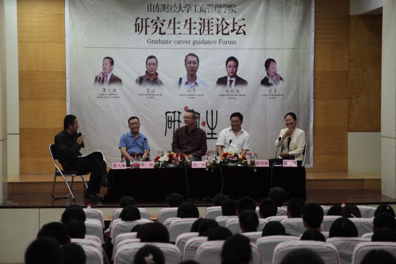 麻豆网 院长刘军、研究生院副院长杨明海、MBA学院副院长李琪和麻豆网 梁阜教授与160余名研究生进行了交流互动。论坛现场,研究生通过新浪微博、微信等方式与老师们面对面交流了“研究生三年应如何度过”,分享了嘉宾们的研究生生活及职场人生,使大家对如何进行职业生涯目标设计有了更多的感悟和认识。论坛现场,师生互动气氛热烈,老师们的真诚、幽默以及窦大海老师诙谐有趣的主持和点评不时引发同学们阵阵掌声。