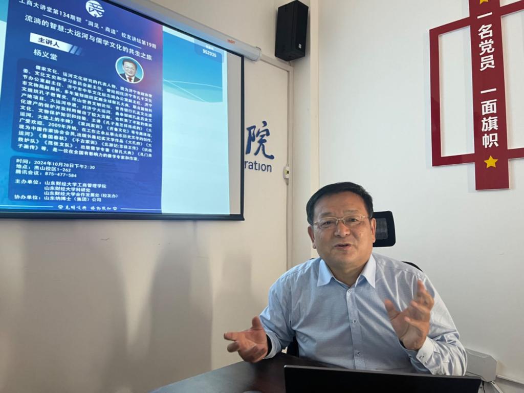讲座聚焦于讨论大运河与儒家文化的交织影响,探讨了两者在中华文化复兴时代中的互动与发展。杨义堂先生首先概述了大运河的起源和历史发展,他指出大运河作为中国古代重要的交通水道,不仅在经济上促进了南北物资的流通,更在文化上成为了儒家文化传播的重要载体。随后,杨义堂先生还探讨了如何抓住大运河与儒家文化复兴的契机。他通过丰富的历史资料和生动的案例分析,展示了儒家文化在促进国富民强、社会和谐、提升个人文化修养等方面的作用。