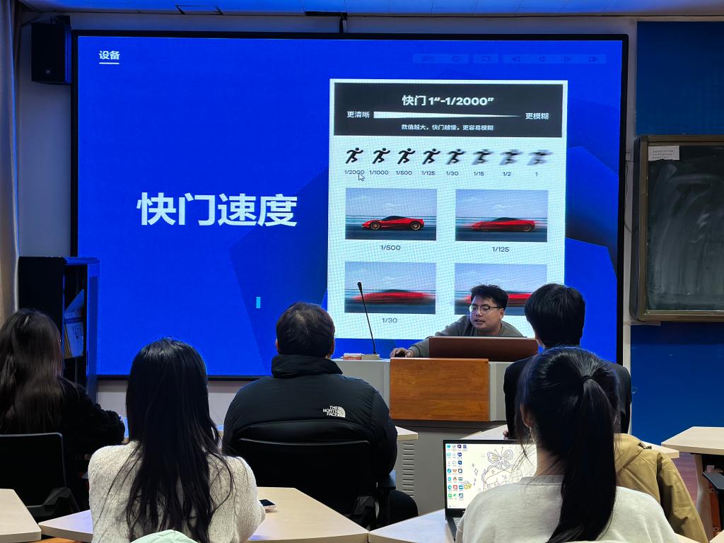 赵泮起从设备使用和拍摄技巧构图两方面展开。在设备部分,他比较分析了手机摄影的基本设置和镜头选择的技巧,为成员们提供了实用的操作指南。在拍摄技巧构图部分,他强调了明确拍摄目的和拍摄主题的重要性,并详细介绍了近景、中景和全景的构图方法。