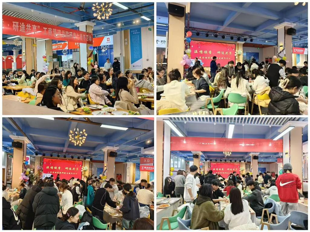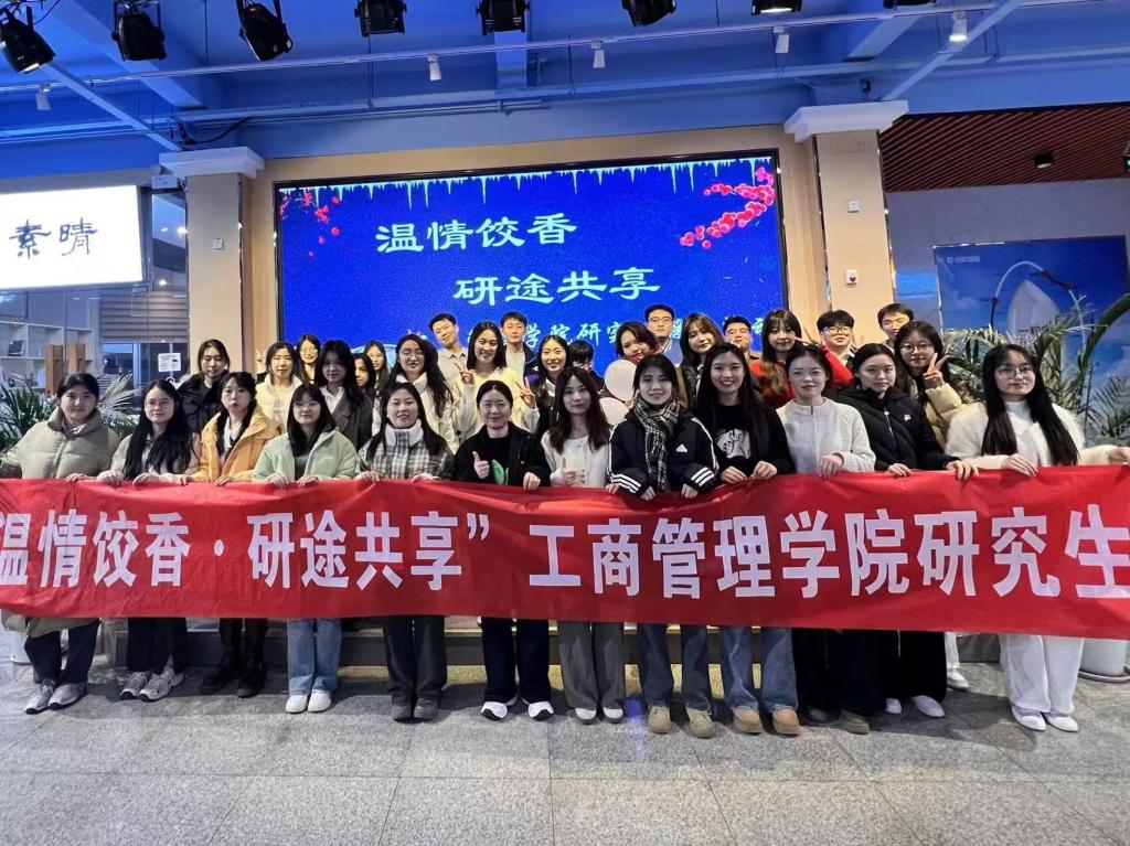 于东苑餐厅二楼举办了“温情饺香,研途共享”主题暖冬活动,旨在让研究生同学们体验冬至氛围、增进友谊,感受到研究生大家庭的温暖。学院党委书记赵世民、副书记彭艳红、市场营销系主任刘侠、办公室主任商亮及研一研二研究生欢聚一堂,包饺子,迎冬至。