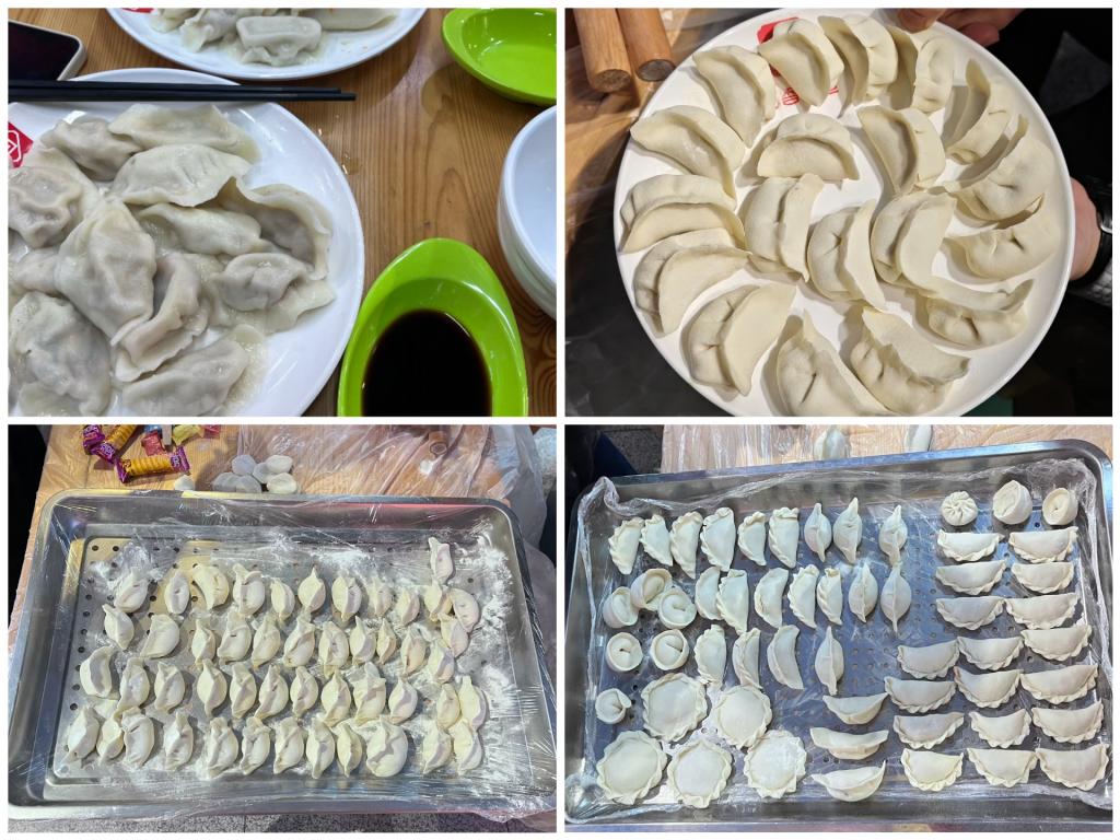 活动在主持人热情洋溢的致辞中拉开序幕。包饺子的热潮迅速席卷全场,师生们齐动手——揉面团、擀饺子皮、包饺子,大家分工协作、有条不紊,经过一个多小时的共同努力,各具特色的饺子呈现在桌盘上。