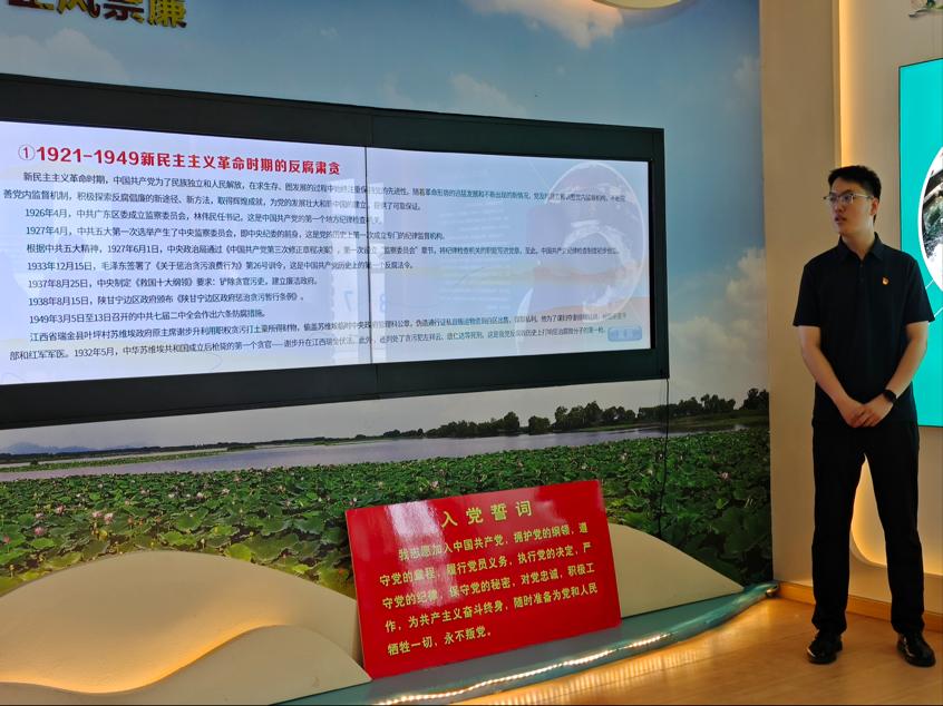 活动以“清泉沁心、唱响廉曲”为主题,师生们依次参观“正风崇廉”“倡廉养廉”“莲风传家”“香远益清”四大主题展区。基地内,庄严肃穆的氛围与莲花元素交相辉映,寓意“出淤泥而不染”的廉洁精神。通过详实的图文史料、珍贵影像,师生系统学习了从古代廉政制度到新时代全面从严治党的发展脉络,深刻领会了廉洁文化的思想伟力。