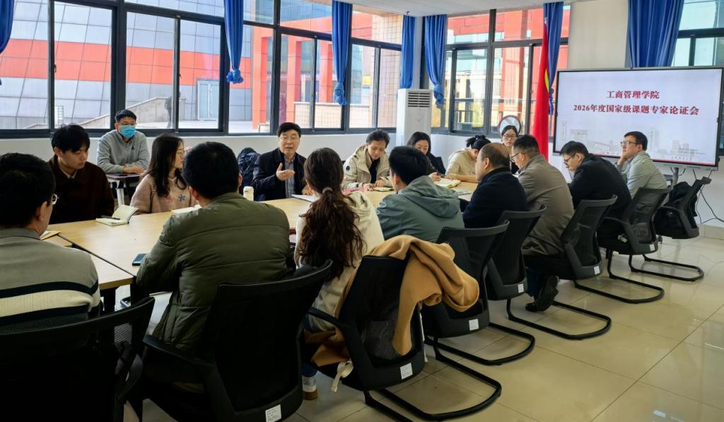 2026年度国家级课题首轮论证会于逸夫楼208会议室顺利召开。本次论证会邀请首都经济贸易大学高闯教授进行现场指导并反馈了部分课题申报书的修改建议。学院院长徐鹏、副院长陈庆江、科研发展中心主任齐蕾及拟申报课题的部分教师参加了辅导会,院长徐鹏主持活动。