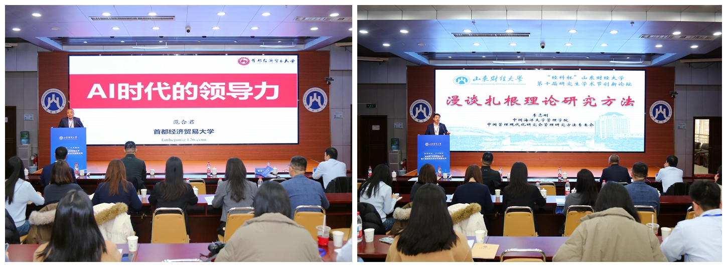 主旨报告阶段,范合君以《AI时代的领导力》为题,探讨了人工智能从实践到学术的前沿发展。李志刚以《漫谈扎根理论研究方法》为题,阐述了该方法的理论内核与实践应用。我校统计与数学学院副教授万道侠以《学科竞赛与研究生学术素养提升》为题,探讨了以赛促研、以赛促学的育人机制。