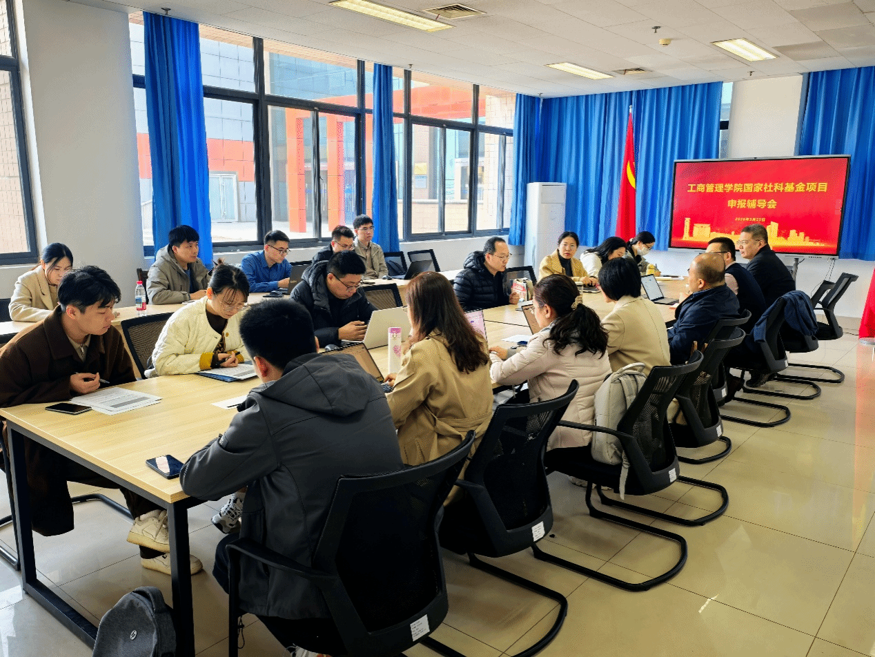 中国经济研究院冯林教授作专题辅导。院长徐鹏、副院长陈庆江及拟申报国家社科基金、教育部人文社会科学研究项目的青年教师参加会议。