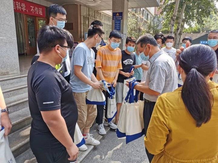 字样的笔记本和签字笔,愿同学们能记录下生命中的温暖感动、肆意张扬和成长蜕变;消毒湿巾和口罩,希望没有辅导员关怀叮咛的学子们依然能守护好自己的健康。
