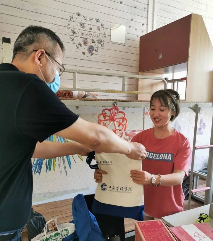 学院领导和老师奔走在本、硕毕业生的四栋宿舍楼,将精心准备的“毕业大礼包”亲自送到毕业生手上。