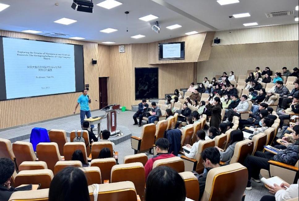 讲坛第11期顺利举行。本次活动特邀西安交通大学管理学院教授、博士生导师胡楠作题为“探索大语言模型对管理与经济研究前沿重塑”的学术报告。学院院长助理陈庆江主持活动。