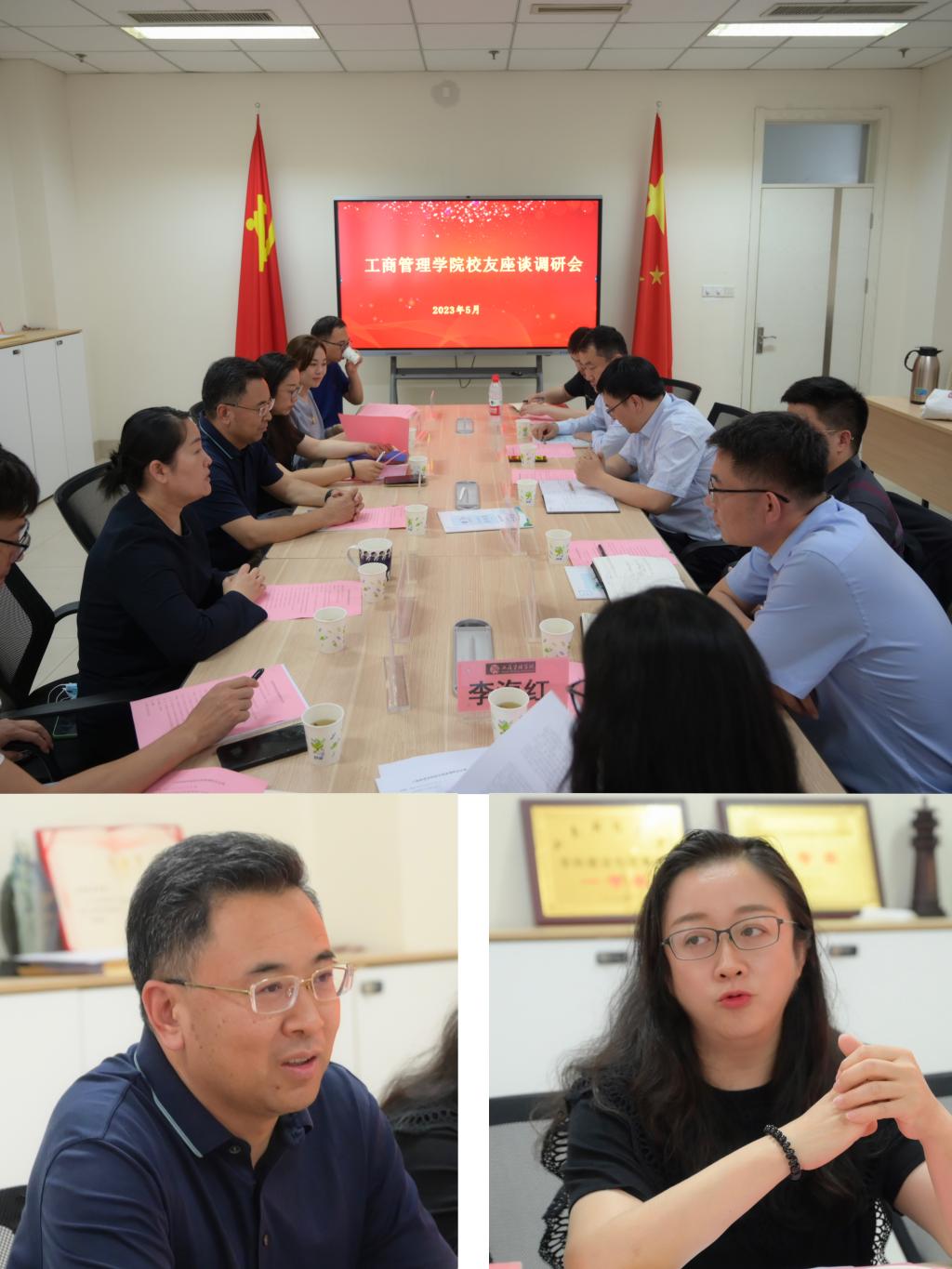 于现泽、学院党委书记赵世民、发展合作处副处长何珅、学院党委副书记侯昭瑾及工商系副主任齐齐、李文杰、人力资源系副主任李海红、市场营销系副主任徐斌、李昱参加座谈,调研座谈会由侯昭瑾主持。