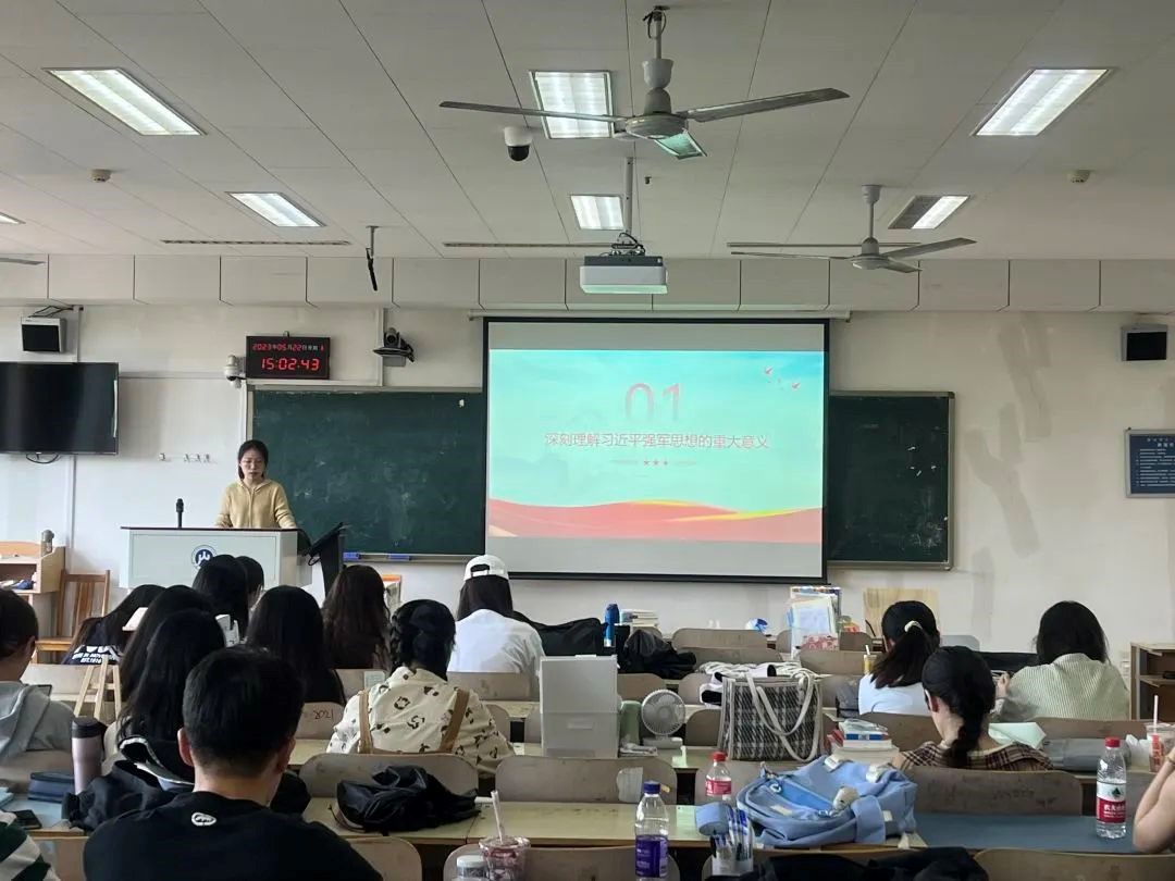 首先,刘玉婷同学带领大家学习了习近平总书记强军思想的重大意义及主要内容。强军实践永不止步,理论创新没有止境。习近平强军思想,立足新时代强军兴军实践,提出一系列标志性引领性的新理念新思想新战略。这一思想的主要内容,集中体现在“十一个明确”的新概括,充分彰显了党的军事指导理论的时代性、开放性和创造性,为我军始终在党的旗帜下有效履行使命任务提供了根本遵循、指明了前进方向。