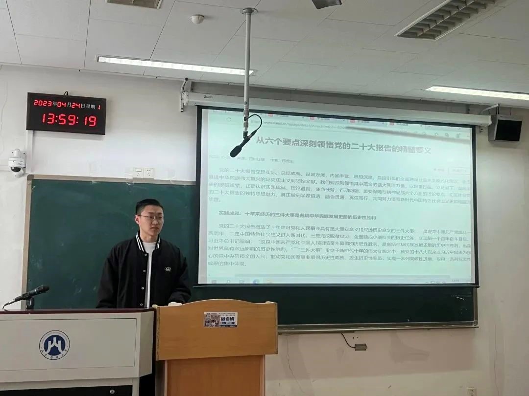 随后,同学们跟随仲崇志从六个要点领悟党的二十大报告精髓,深刻地学习了党的实践成就、理论遵循、使命任务、行动纲领、重要保障以及精神品质。研究生会全体成员纷纷表示在今后要积极参加主题教育学习活动,从习近平新时代中国特色社会主义思想中汲取智慧与力量,在理论武装中不断提高自身政治素养,在“请党放心,强国有我”的号召中投身实践,增长本领,更好地为同学们服务。