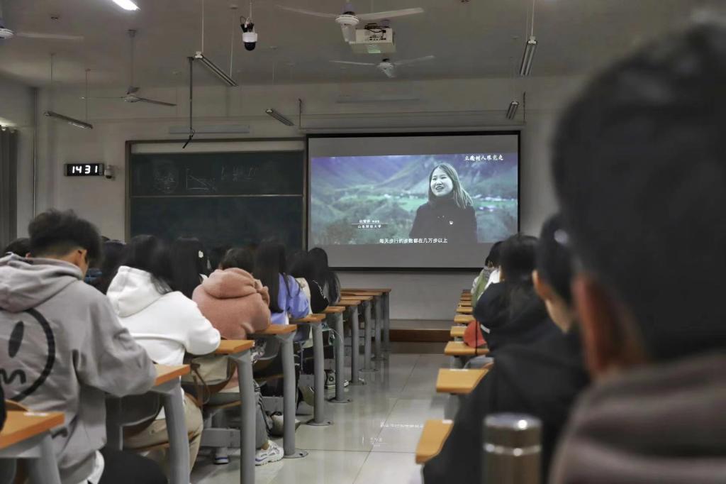 在圣井校区8号教学楼组织2022级新生观看“立德树人跟党走”专题记录片。