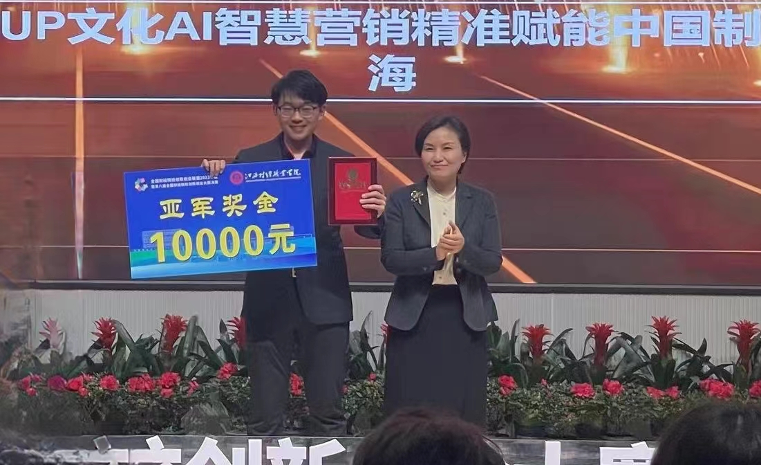 2022级旅游管理专业本科生李春霖为队长的《UPUP文化——AI智慧营销精准赋能中国制造出海》项目获得亚军。